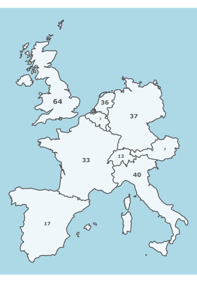 Figuur 3. Kaart van de buurlanden van Frankrijk en hun totaal aantal medailles in Tokio 2020. (bron: eigen werk)